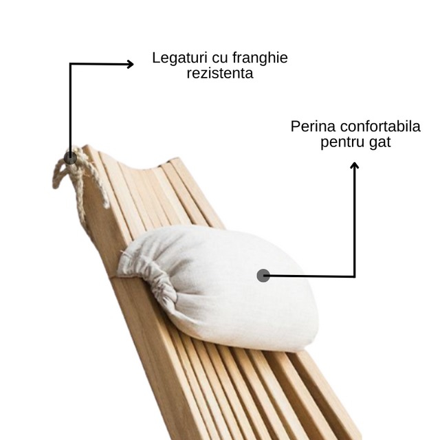 Cu un design ergonomic, acest sezlong oferă susținere excepțională pentru spate și gât, asigurând o relaxare completă și fără efort. Construcția sa solidă din lemn masiv și sfoară rezistentă îl fac extrem de durabil, putând susține o greutate considerabilă.
