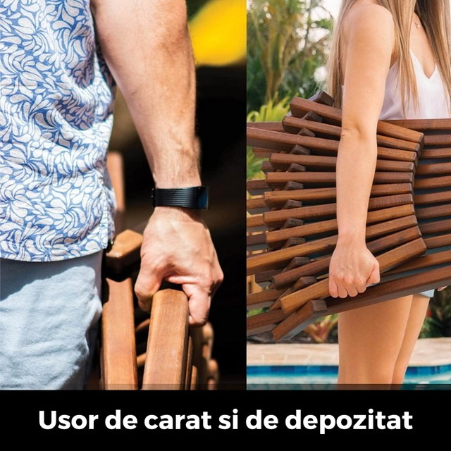 Acest șezlong pliabil reprezintă o combinație perfectă între stil și confort. Fiind confecționat din lemn masiv de cea mai înaltă calitate, acesta este rezistent la intemperii și incredibil de durabil. Cu proprietăți de rezistență la apă, poate fi folosit atât în interior, cât și în exterior. Este alegerea perfectă pentru grătarele din curte, taberele pe plajă cu cei dragi sau aventurile de camping alături de familie și prieteni.